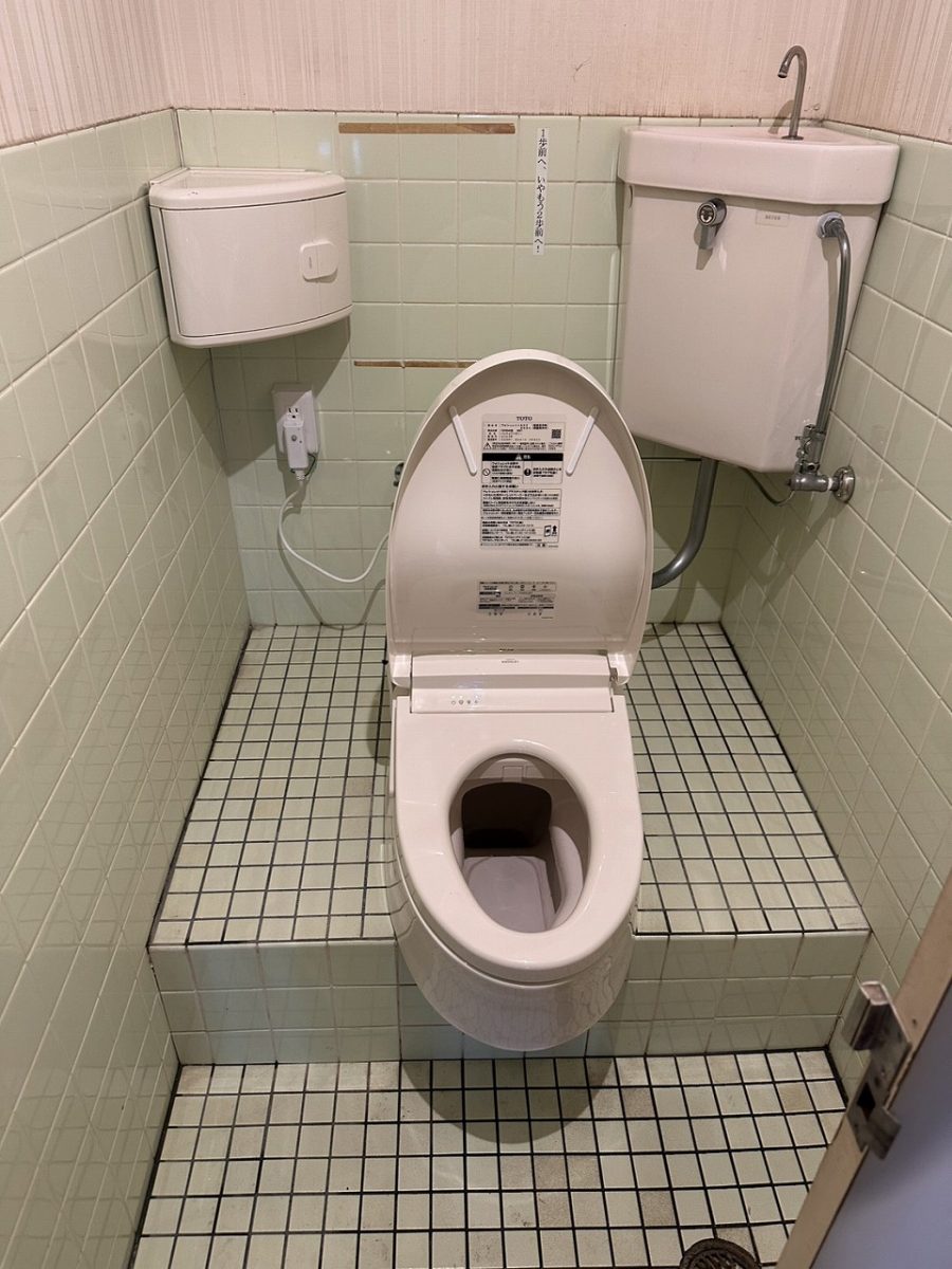 これまでの和式トイレの段差を活かしたまま、座って快適に利用できる洋式タイプへと変更し、あわせてウォシュレットも完備しました。
